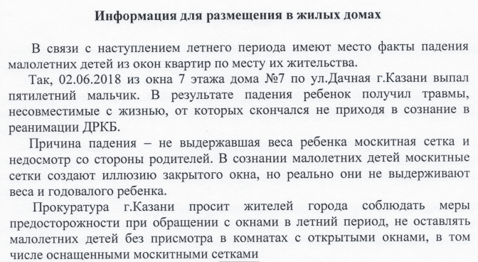 ПРОКУРАТУРА КАЗАНИ СООБЩАЕТ О СЛУЧАЯХ ПАДЕНИЯ ДЕТЕЙ ИЗ ОКОН КВАРТИР. БУДЬТЕ БДИТЕЛЬНЫ.