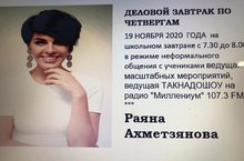 Сегодня нашей гостьей стала Раяна Ахметзянова, ведущая масштабных мероприятий, ведущая ТАКНАДОШОУ на радио Миллениум 107.3 FM. Мероприятие прошло с соблюдением всех санитарных норм.