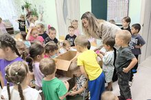 Ребята группы 1 вместе с воспитателем Аидой Равильевной уже посетили малышек и подарили им игрушки, из которых "выросли".