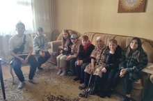 В предверии празднования 9 Мая 6в класс посетил на дому и поздравил ветерана-труженика тыла с праздником Победы!