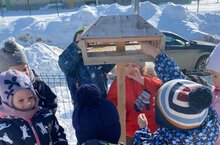 Начало весны - самое время позаботиться о птицах. Ягоды и семена на деревьях заканчиваются, а отыскать корм под толстым слоем снега птицы не могут... Готовые кормушки ребята развесили на территории парка. Эти простые, но такие нужные кормушки помогут птицам не погибнуть от голода.