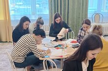 Сегодня в Детском саду №158 Тамчы прошел мастер-класс для педагогов по изготовлению специальных рамок для рисунков - паспарту.