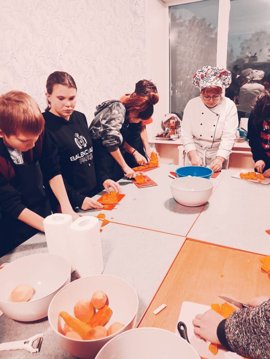 Опубликовано: 23.11.2023В целях профориентационной работы в школе - интернате 11 каждый четверг проходят кулинарные мастер-классы по приготовлению блюд. Ребят учат готовить лучшие шеф - повара и повара кафе и ресторанов нашего города. Многие блюда дети уже могут приготовить самостоятельно.