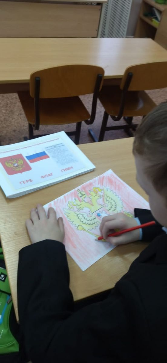 С целью формирования у учащихся патриотизма, активной жизненной позиции, сегодня в нашей школе прошли классные часы, посвящённые Государственным символам Российской Федерации. В ходе урока ребята раскрывали значение государственных символов, историю возникновения символики и нарисовали рисунки.