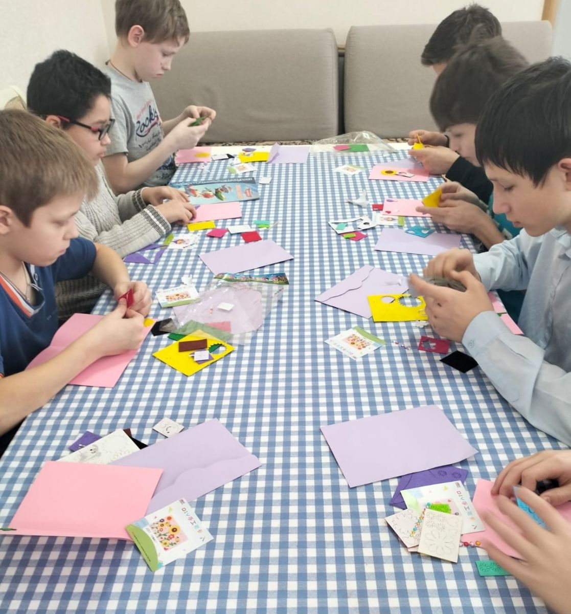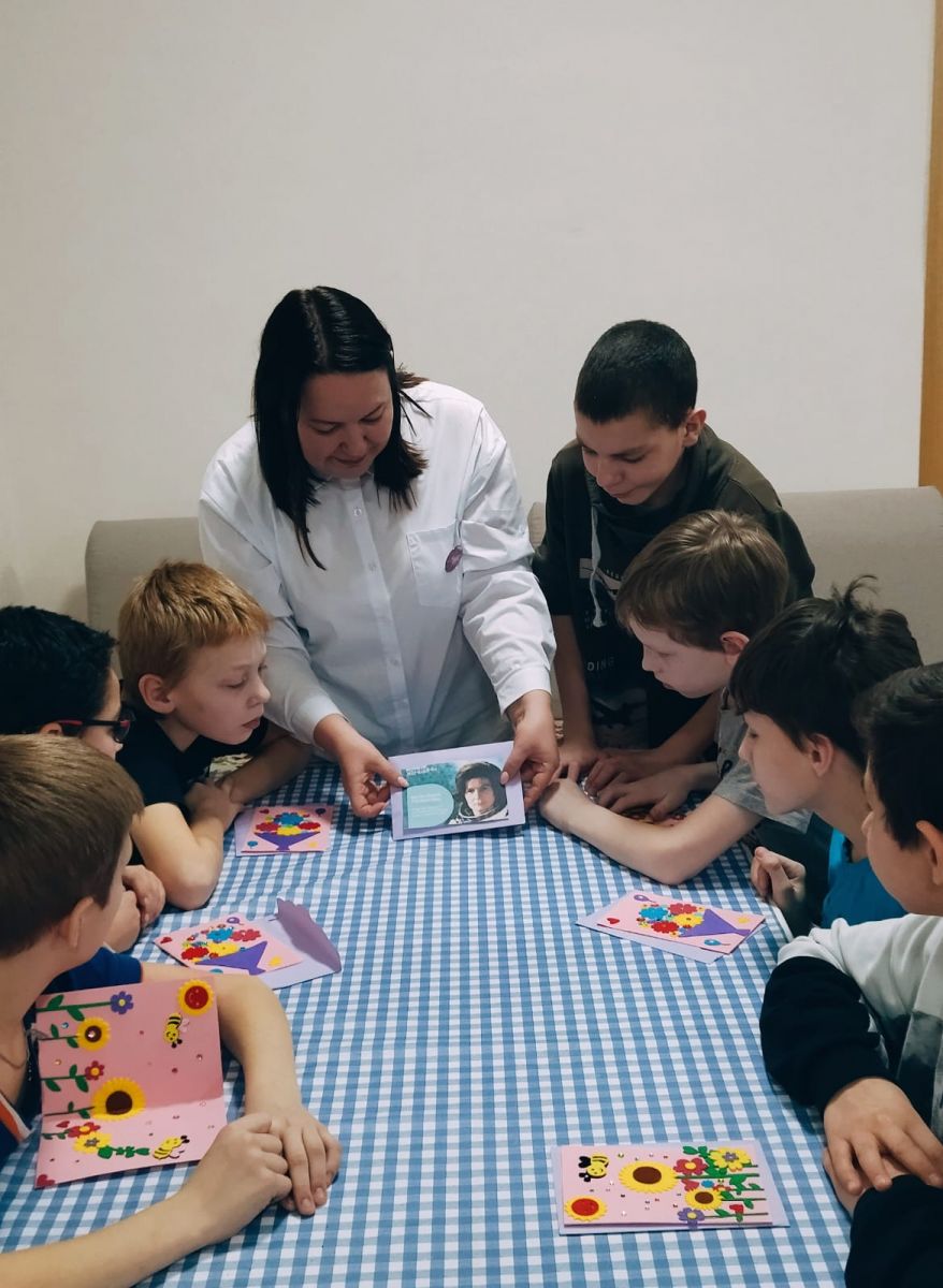 Также в преддверии праздника в рамках проекта «Тем, кто вдохновляет» прошла акция по созданию поздравительных открыток для женщин. Ребята также подготовили в подарок девочкам и учителям цветы и мыло ручной работы.