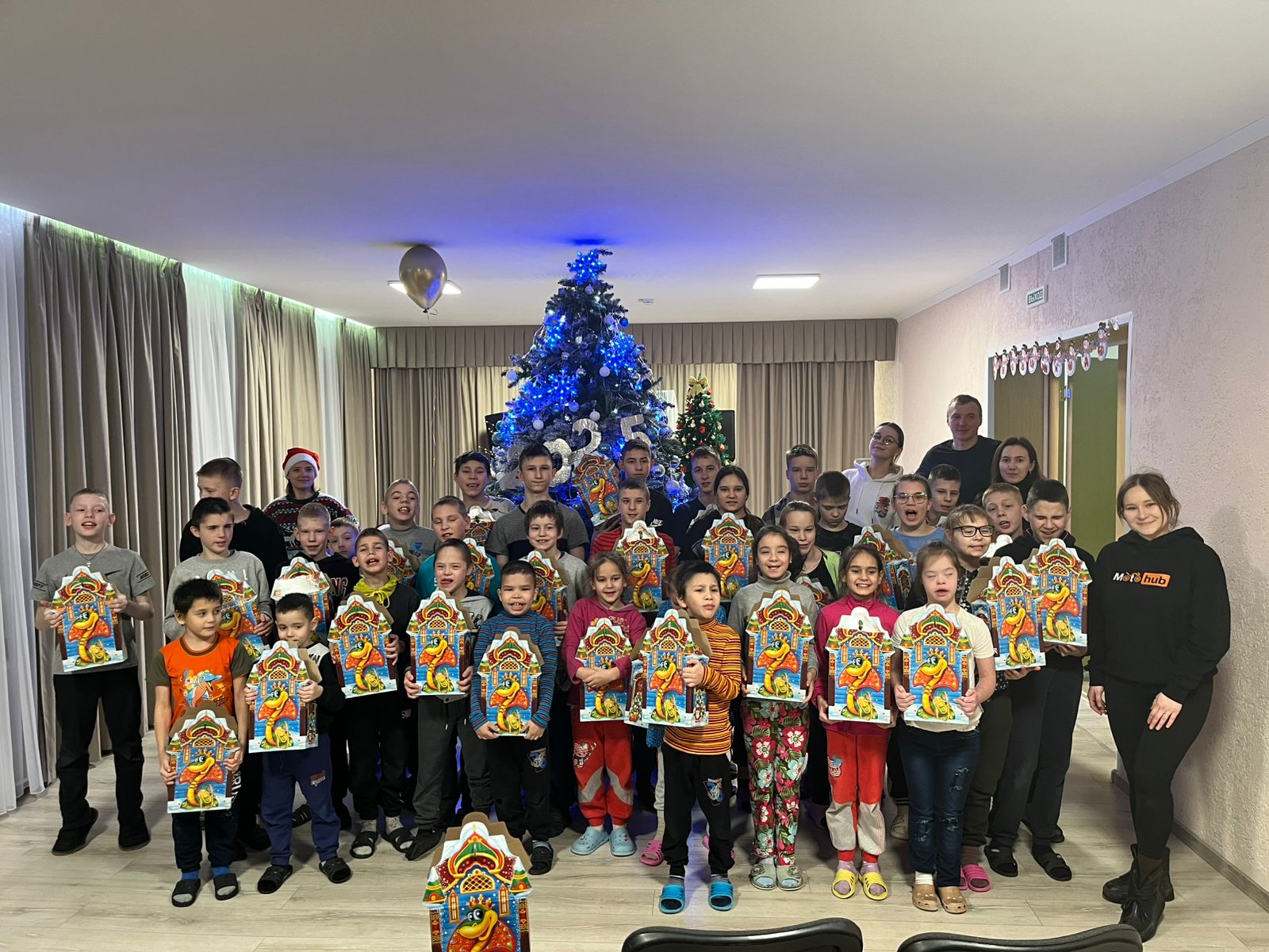 Опубликовано: 14.01.202514 января в гости к детям приехали участники Казанского мотосообщества motohub.Они общались с детьми,водили хороводы вокруг елки,а в конце подарили замечательные подарки.