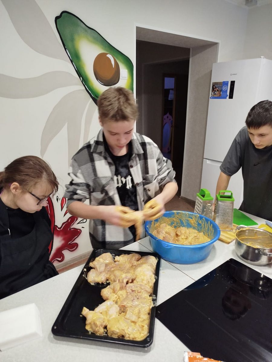 Опубликовано: 23.01.202523.01.2025 г. состоялся мастер-класс помощницами шеф-повара ресторана "Итле" Алсу и Аней. Перед тем, как приступить к приготовлению блюда, дети повторили инструктаж по технике безопасности пользования столовыми приборами, ножом. Ребята приготовили макароны и курицу, запечённую в духовке. А также дети приготовили салат. В процессе приготовления пищи, дети самостоятельно нарезали овощи для салата, и разделывали курицу. Также во время подготовки к приготовлению второго блюда, с детьми вспоминали правила гигиены.
