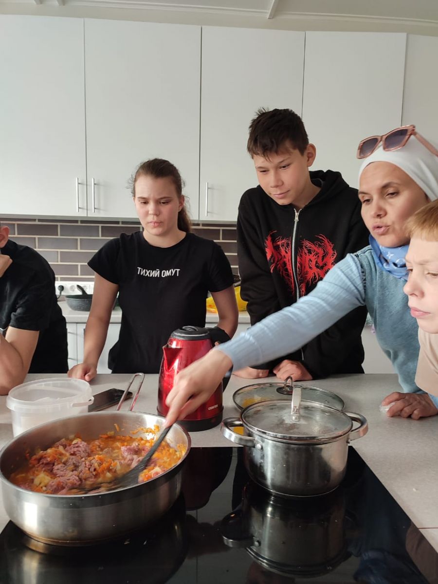 Опубликовано: 17.04.202517.04.2025 г. совместно с волонтёром АНО Аструм Эльмирой Муфаздаловой и детьми нашей школы-интерната был проведён мастер-класс по приготовлению макарон и гречки с подливкой из фарша. Перед началом работы с детьми провели инструктаж по технике безопасности при приготовлении пищи и закрепили правила гигиены. Эльмира познакомила детей с технологией приготовления и рецептурой данных блюд. Дети самостоятельно промывали гречку, затем залили в кастрюле водой и отправили на плиту. Варили гречку под крышкой на малом огне 20 минут. Следующим этапом работы стало приготовление подливки: дети очистили лук и нарезали кубиками, затем очистили морковь и натерли на тёрке. На разогретую сковороду налили растительное масло и выложили лук, обжарили его на среднем огне в течение 1-2 минут и добавили морковь, заьем обжарили овощи еще пару минут. Выложили фарш в сковороду с обжаренными овощами, обжарили фарш с луком и морковью в течение 4-5 минут. Затем добавили соль, молотый, томатную пасту, и тушили мясной фарш в томатном соусе на малом огне около 10 минут. Блюда получились вкусные, ребята остались довольны.