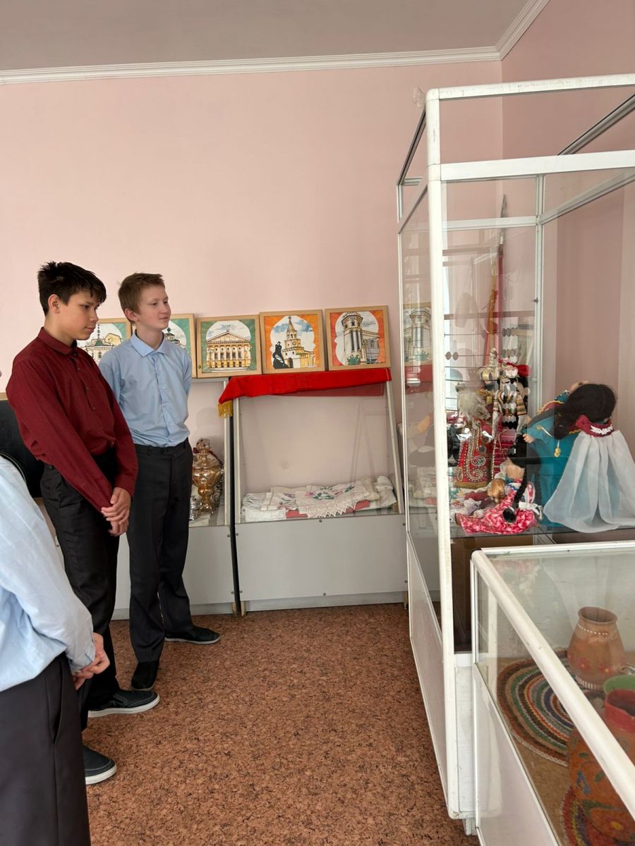 Также учащиеся старших классов посетили школьный музей, расположенный в кабинете истории.