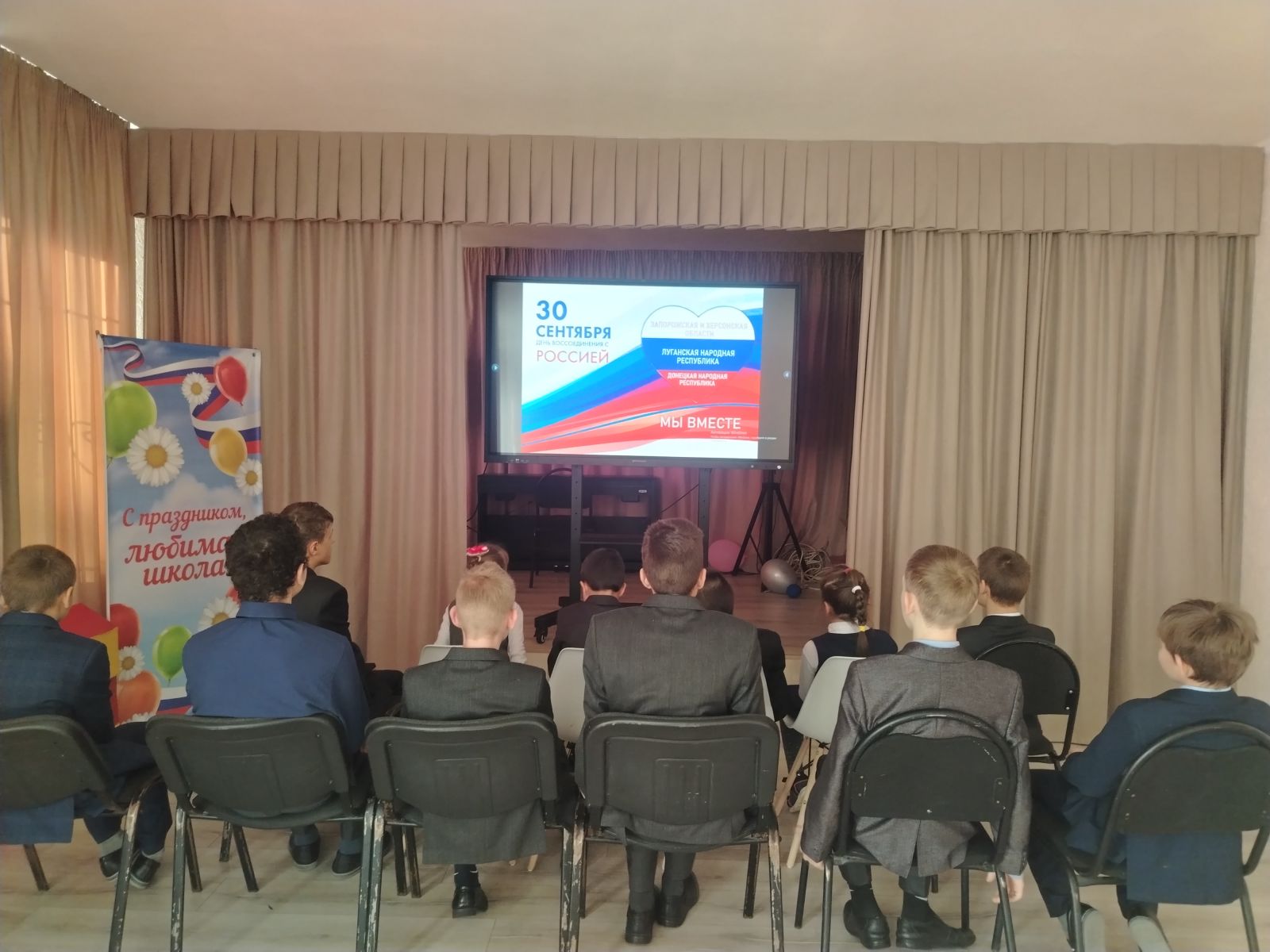 Сегодня в нашей школе прошли классные часы и урок мужества, посвящённые Дню воссоединения ДНР, ЛНР, Запорожской и Херсонской области. Ребята узнали о том, как произошло воссоединение с Россией осенью 2022 года; какой трудный путь прошли в течение восьми лет жители регионов, отстаивая свое право говорить на русском языке, добиваясь независимости и признания; о важных событиях в истории Республики; о значении Донбасса для России, а также о тех, кто сейчас стоит на защите нашей Родины.