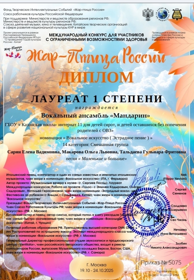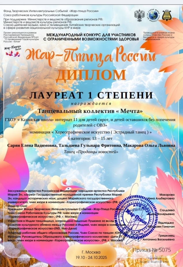 Опубликовано: 12.11.2025Творческие коллективы школы‑интерната № 11 стали победителями международного конкурса «Жар‑Птица России»!