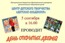 5 сентября 2014 года в 16.00 в ЦДТ "Детская академия" состоится день открытых дверей!
