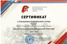2 сентября 2023 года юнармейскому отряду "Лидеры" МБОУ "Гимназия 125" Советского района г.Казани в торжественной обстановке было присвоено имя Кавалера Ордена Мужества подполковника Ермолина Михаила Анатольевича