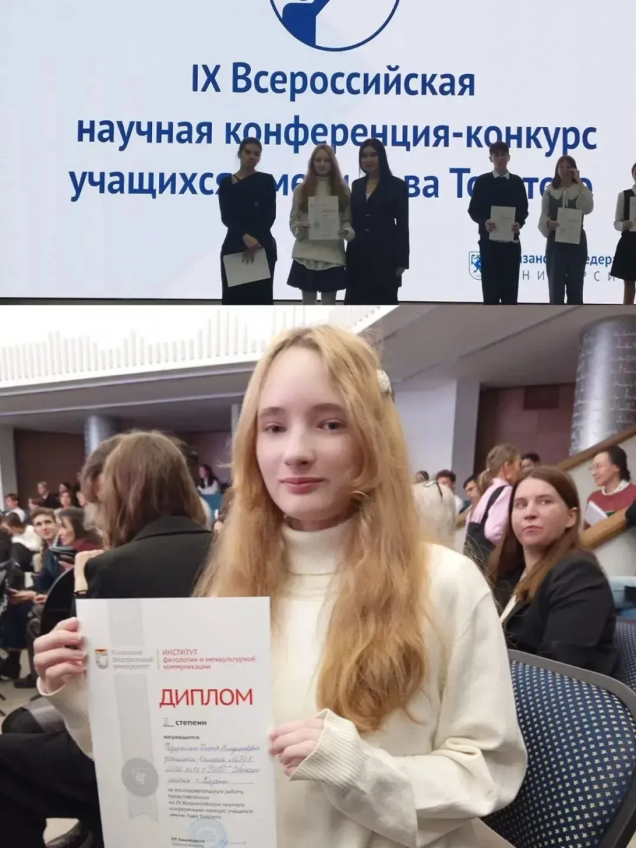 Учащаяся "Грамматики английского языка" стала Лауреатом II степени на Всероссийской конференции им Л.Толстого. 02.03.2026