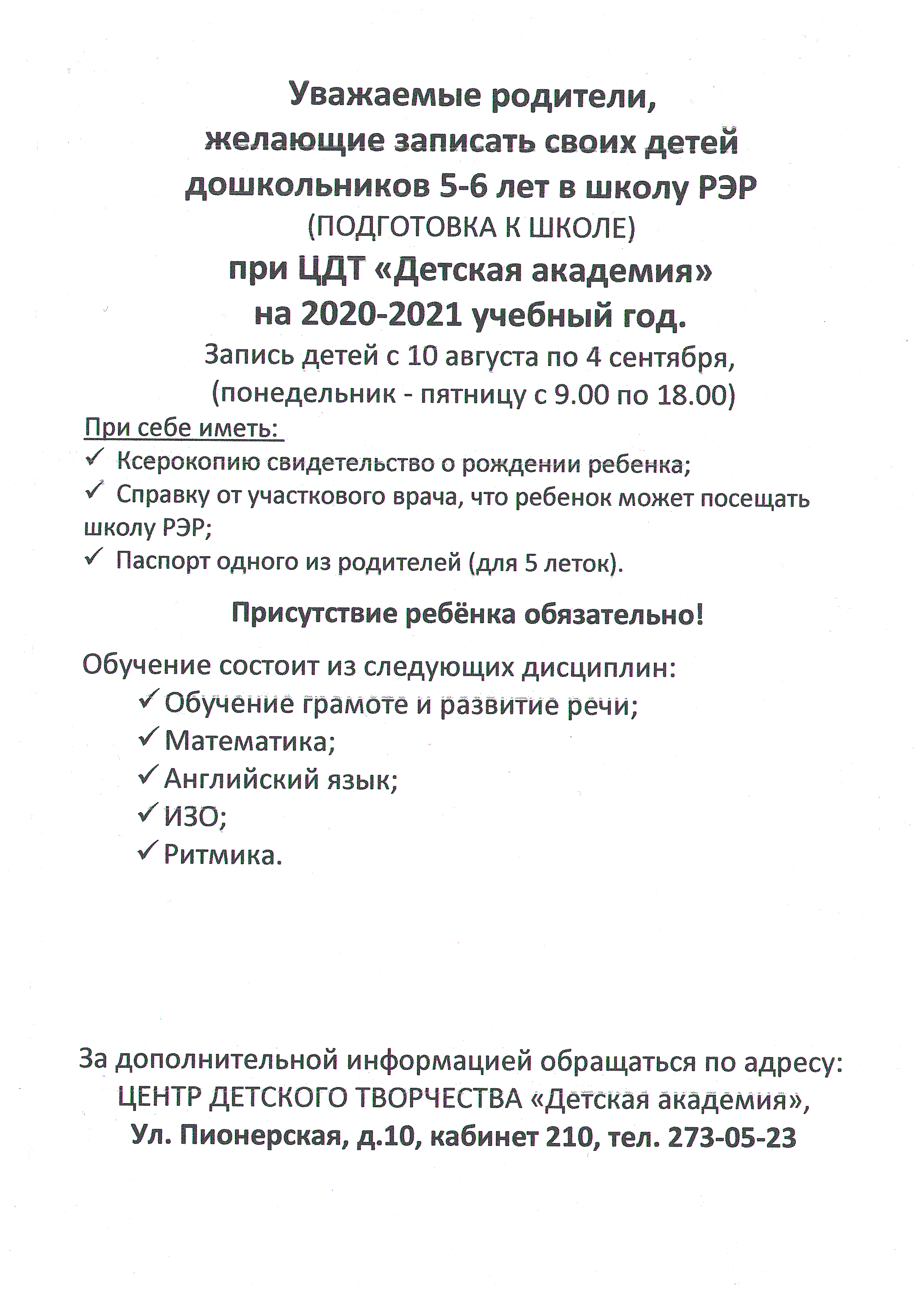 запись в Школу РЭР на 2020-2021 учебный год будет проходить с 10 августа по 4 сентября 2020