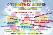 Приглашаем всех на ДЕНЬ ОТКРЫТЫХ ДВЕРЕЙ ЦДТ"Детская академия". здесь вы сможете подробно узнать обо всех направлениях, действующих в Центре, а так же познакомится с педагогами.