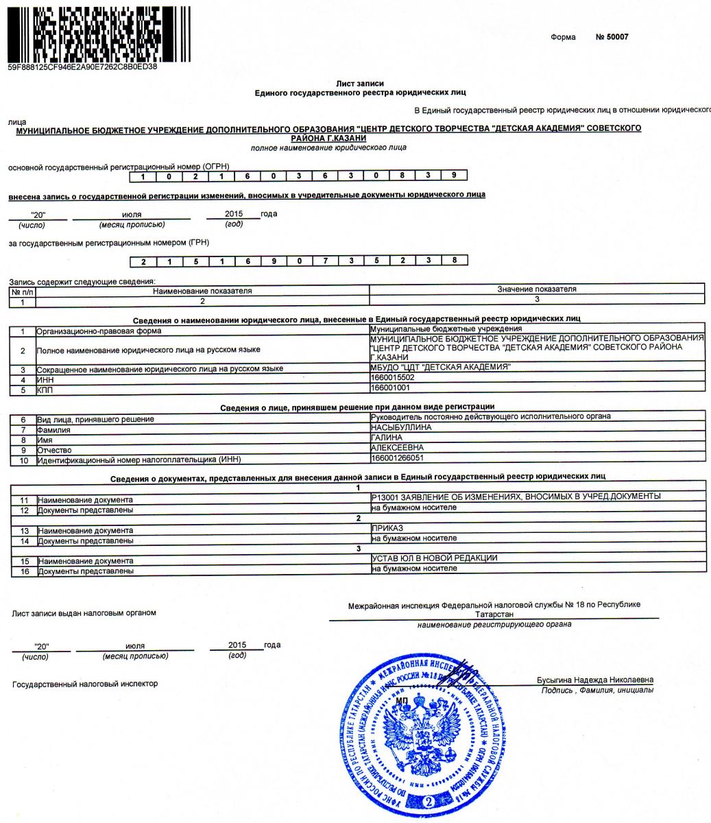 Короткое название: МБУДО "ЦДТ "Детская академия" Советского района г.Казани
