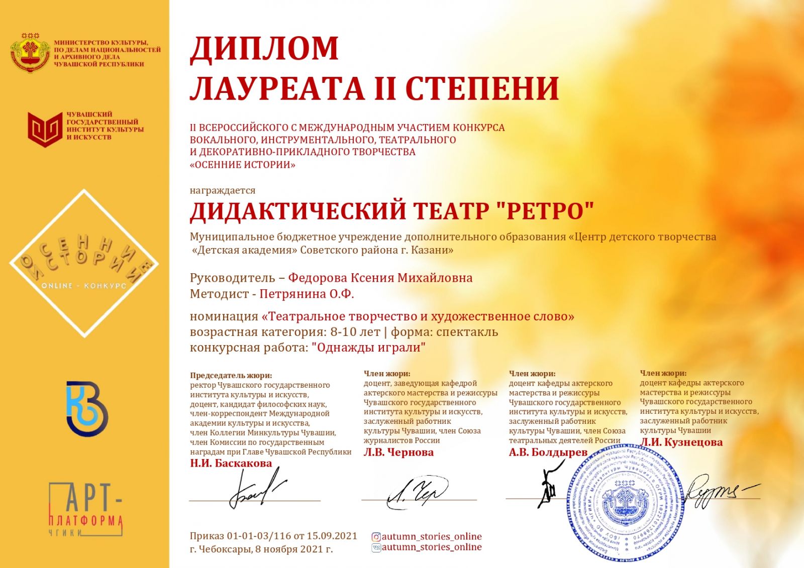И ТАК ЖЕ ПРИНЯЛИ УЧАСТИЕ ДИДАКТИЧЕСКИЙ ТЕАТР "РЕТРО" И БЫЛИ НАГРАЖДЕНЫ ДИПЛОМОМ ЛАУРЕАТА ВТОРОЙ СТЕПЕНИ. ПЕДАГОГ ФЕДОРОВА К.М.