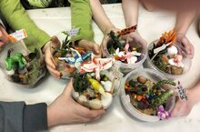 На занятиях в объединении "Акварельки" (педагог Визгалова М.Ю.) прошел мастер-класс "Парк Юрского периода". Дети узнали, откуда появились динозавры и почему исчезли. Познакомились с видами динозавров: травоядными, хищниками, летающими и водоплавающими. Посадили каждый свой Парк Юрского периода и поселили туда своих динозавров.