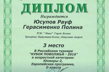 27 марта 2016 года в Казани состоялся Российский турнир "Кубок поволжья - 2016" по спортивным танцам.