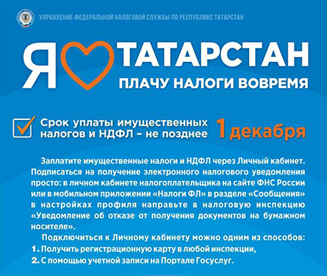 Срок уплаты имущественных налогов и НДФЛ - не позднее 1 декабря.