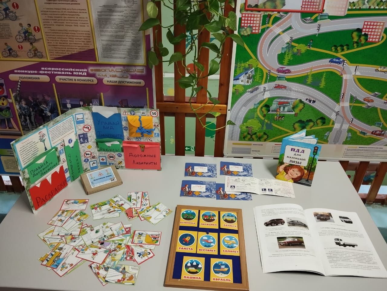 Для ребят, родителей и педагогов подготовлены памятки и игры. Ребята могут в перерывах между занятиями поиграть на настольной игровой площадке и в процессе игры вспомнить правила дорожного движения.