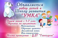 Объявляется набор в Школу развития "Умка". 22.08.2023