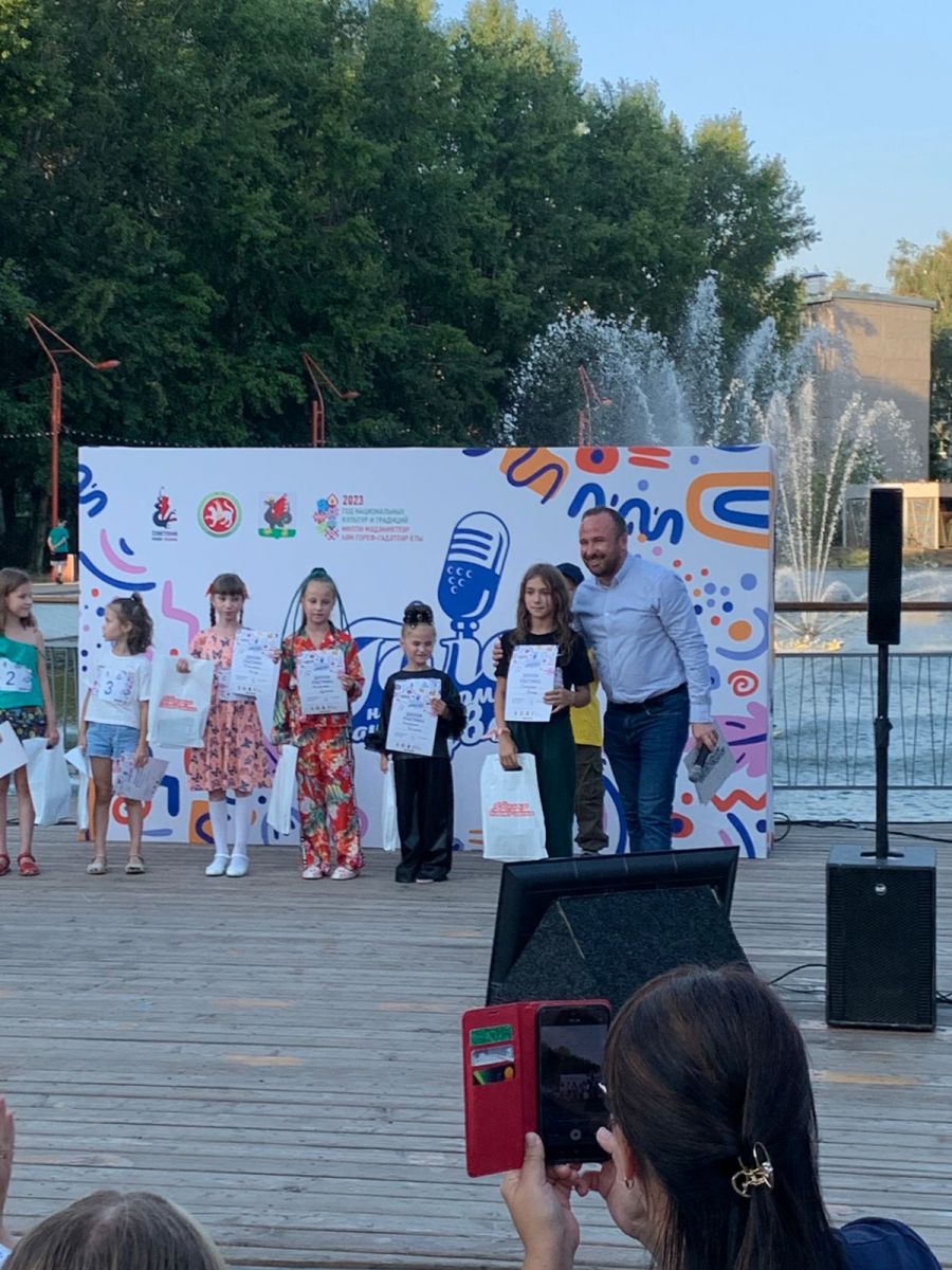 17 августа в Сквере 100-летия Строительной отрасли прошел конкурс “Голос нашего двора”. Основная миссия конкурса - укрепить добрососедские отношения между жителями при помощи творчества. Здесь любой желающий, независимо от возраста и уровня подготовки, предварительно подав заявку на сайте, сможет продемонстрировать свои вокальные данные. В перерывах между категориями вокалистов выступили: хореографический коллектив «Зеркало», детская хореографическая студия «Ритмы детства», Валиахметова Ляйсан, Салихов Ридаль.