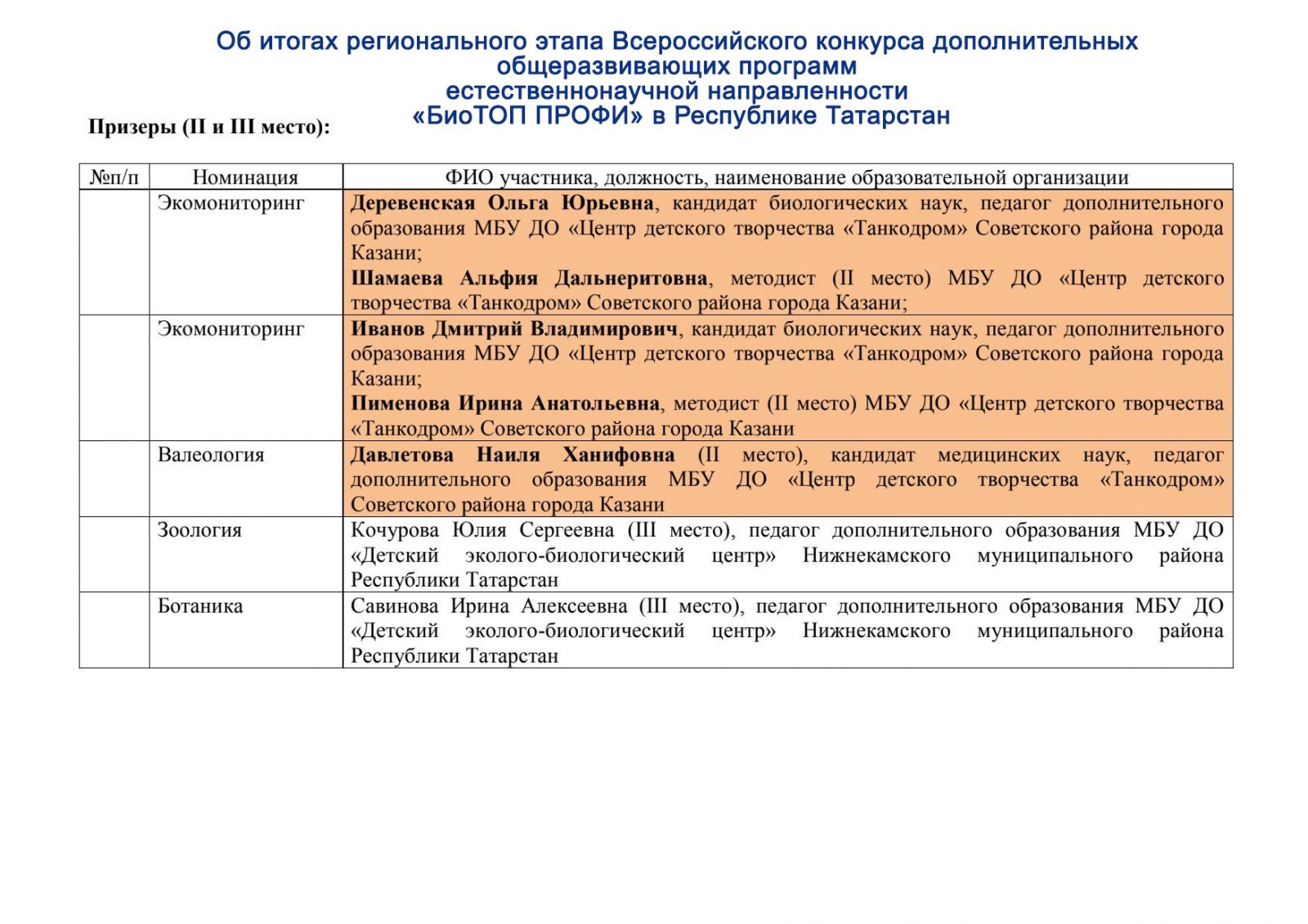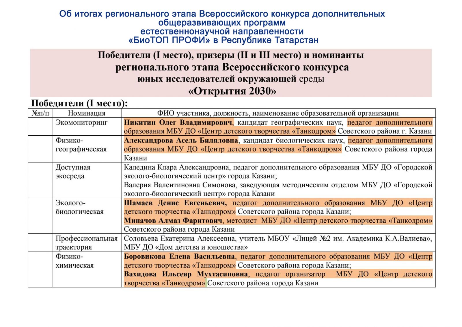 Поздравляем педагогов естественно-научного отдела ЦДТ "Танкодром" - победителей, призеров и номинантов регионального этапа Всероссийского конкурса юных исследователей окружающей среды «Открытия 2030».