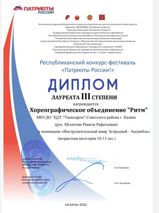 Муниципальное бюджетное учреждение дополнительного образования "Центр детского творчества "Танкодром" Советского района г. Казани - новости