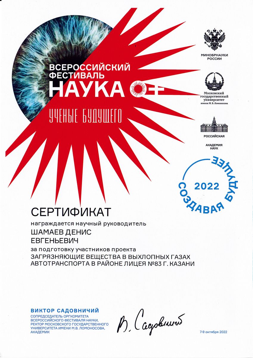 С 7 по 9 октября 2022 года в рамках Всероссийского фестиваля науки NAUKA0+ в Московском государственном университете им. М.В.Ломоносова состоялся финал Международного конкурса научно-технических работ школьников старших классов «Ученые будущего». Конкурс направлен на поддержку одаренных детей, развитие у школьников интереса у изучению точных, естественных и инженерных наук, создание условий для интеллектуального развития учащихся, распространение и популяризацию научных знаний и повышение педагогической квалификации преподавателей России и других стран.