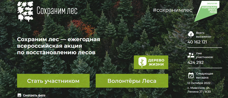 В октябре в Казани проходит Всероссийская акция «Сохраним лес», Республика Татарстан уже четвертый раз присоединяется к акции и за три года ее участники высадили 150 миллионов деревьев. Ежегодная всероссийская акция по восстановлению лесов проводится для привлечения внимания общественности к бережному отношению и приумножению лесных ресурсов.