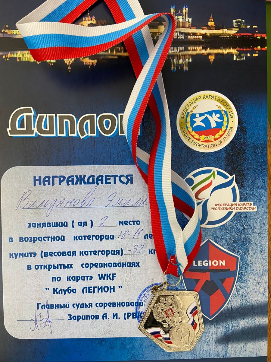 Поздравляем победителя Открытых соревнований по каратэ WKF "Клуба легион" Вильданову Эмилию, занявшей второе место, руководитель Осипова Л.А.