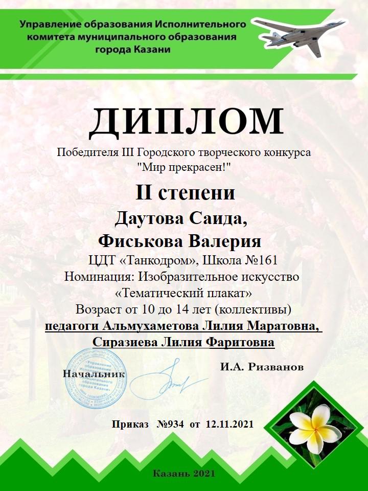 Поздравляем победителей III городского творческого конкурса "Мир прекрасен"!