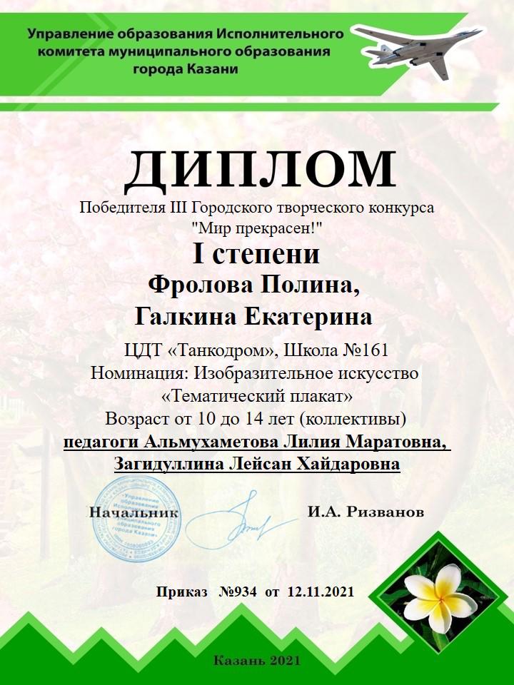 Фролова Полина,Галкина Екатерина - 1 место, Даутова Саида,Фиськова Валерия - 2 место.