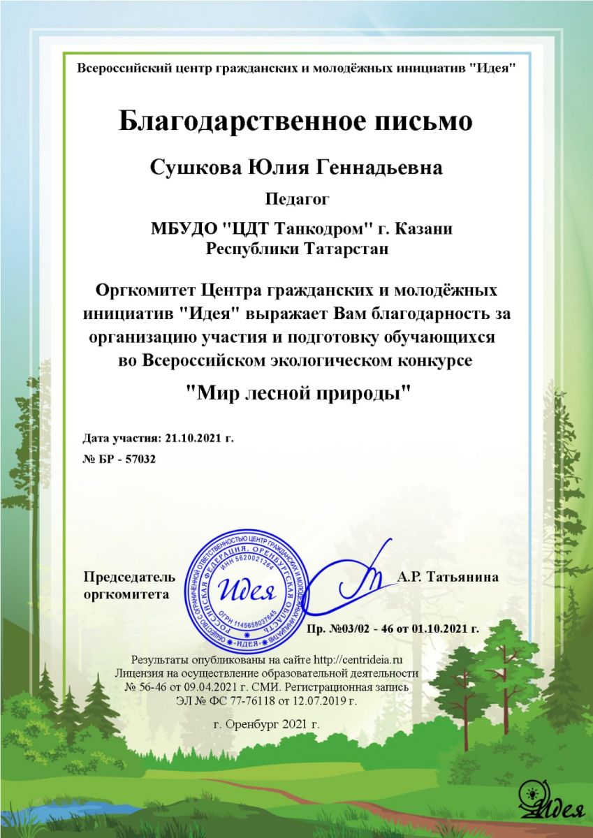 По решению регионального организационного комитета Республики Татарстан на базе МБУДО «ЦДТ «Танкодром» зарегистрирована офлайн-площадка проведения Экодиктанта.