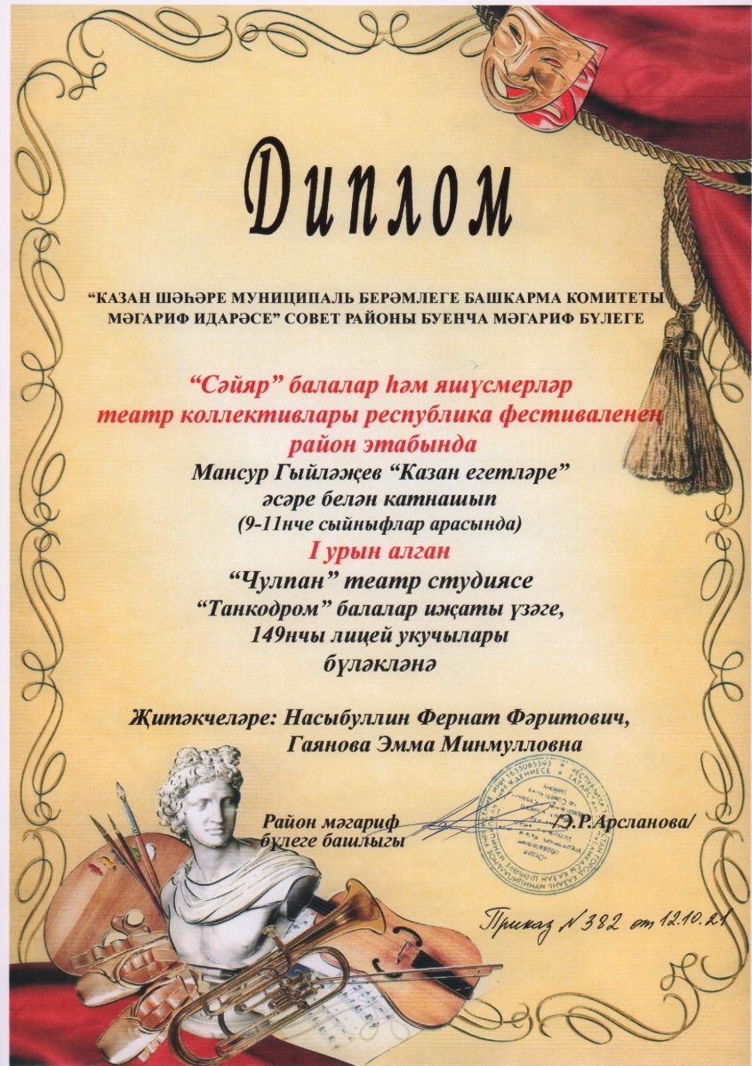 Поздравляем победителей районного этапа Республиканского фестиваля детских и юношеских театров «Сайяр»!