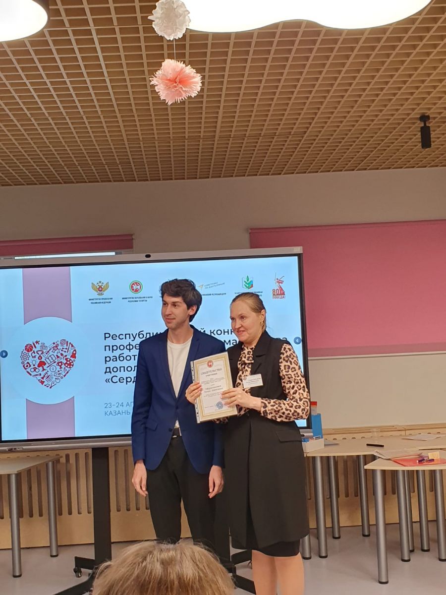24 апреля 2025 года состоялся финал Республиканского конкурса профессионального мастерства работников сферы воспитания и дополнительного образования "Сердце отдаю детям - 2025", в котором успешно принимала участие и достойно прошла все конкурсные испытания, показала высокий уровень профессионализма педагог дополнительного образования ЦДТ "Танкодром" Габдрахманова Регина Шамилевна. Поздравляем!!! (видео с конкурса)