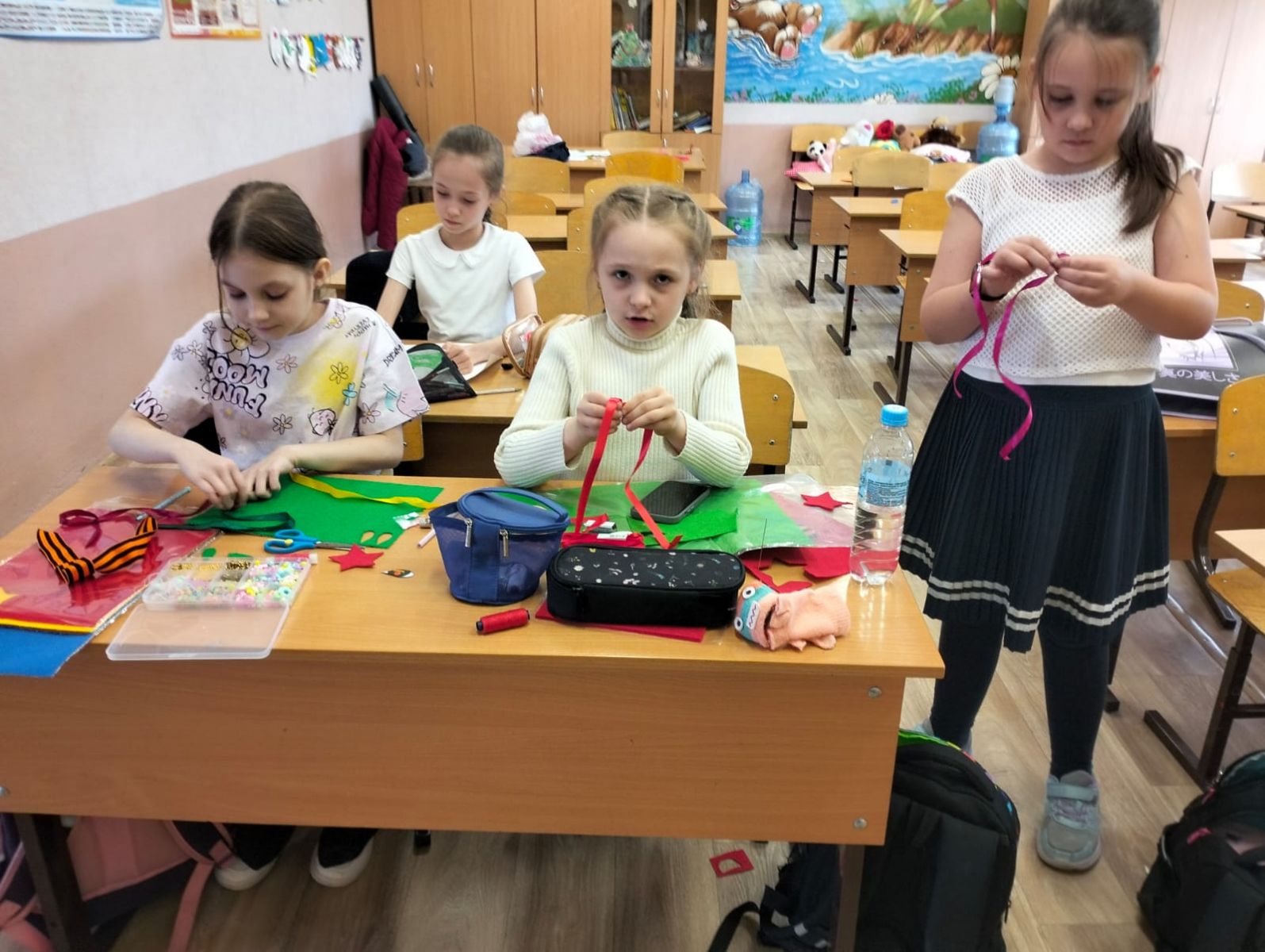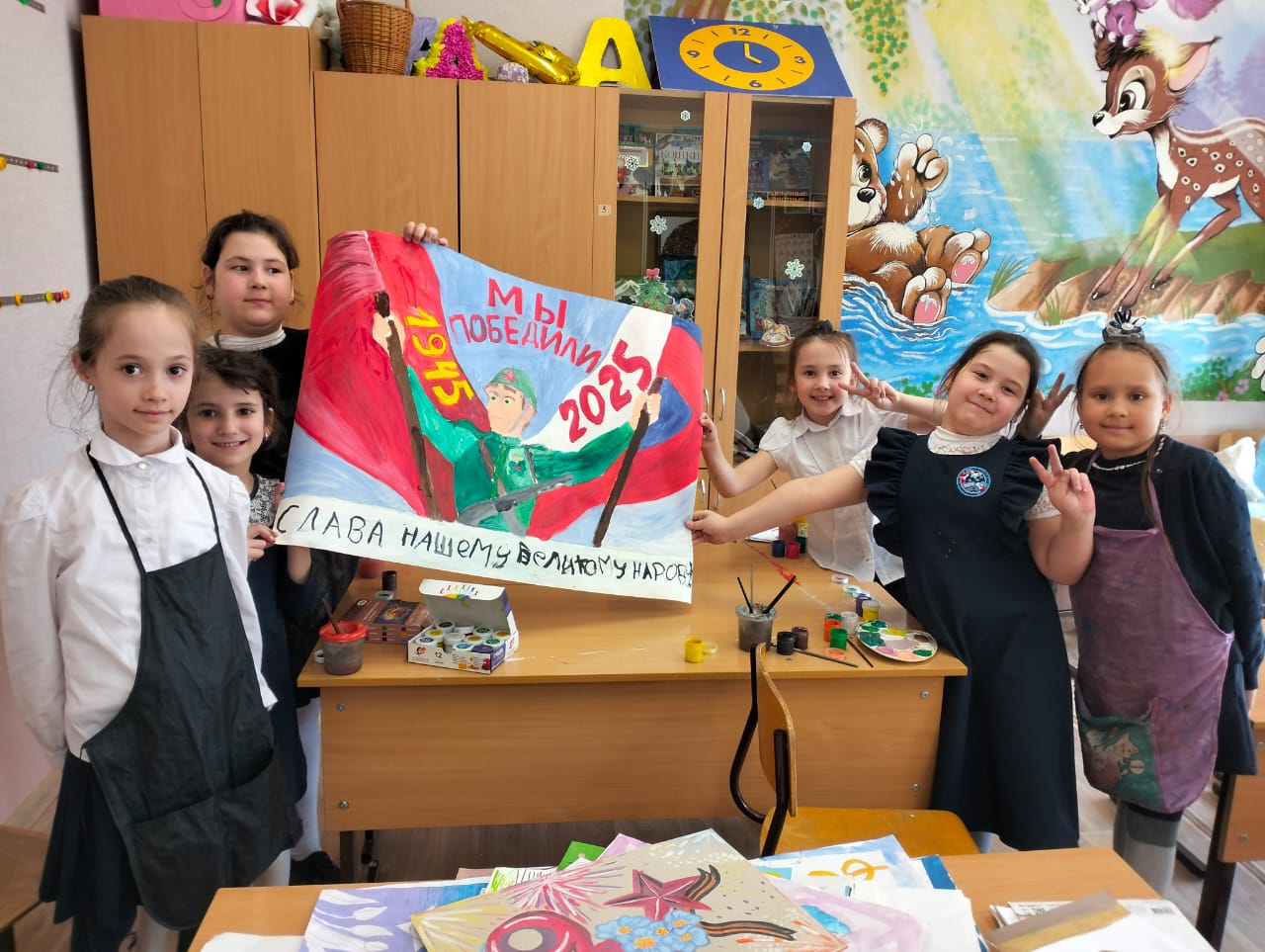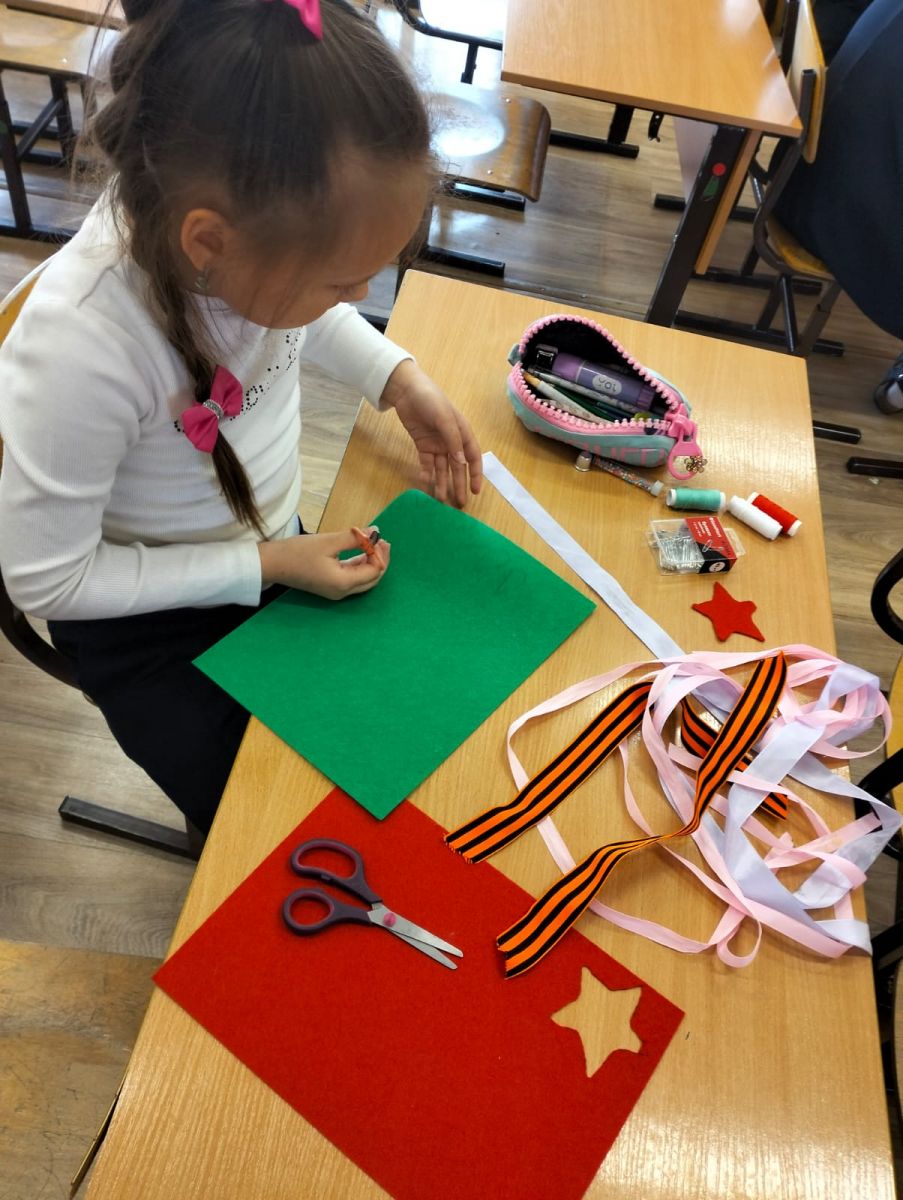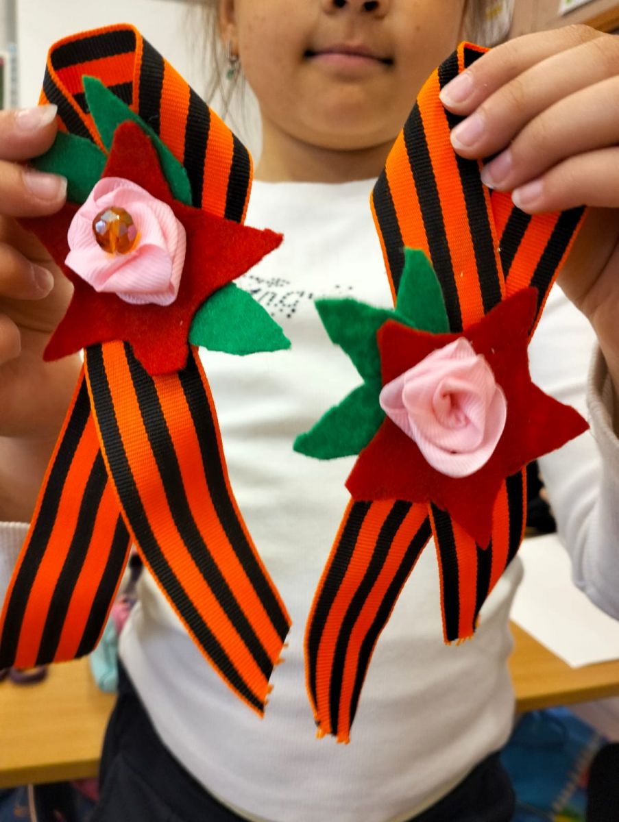 На занятиях 28 и 29 апреля 2025г. в объединении "Юный художник" (рук. Гизатуллина Д.Р.) учащиеся подготовили плакат, посвящённый 80-летию Победы в Великой Отечественной войне и изготовили украшенные георгиевские ленты. Георгиевская ленточка-это символ Победы, который стал знаком незабвенности подвига советского народа. Этот символ олицетворяет связь поколений и воинскую славу. Носить её у сердца - значит почтить подвиг победителей.