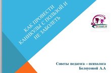 "Как провести каникулы с пользой и не заболеть" советы педагога-психолога Белоусовой А.А.