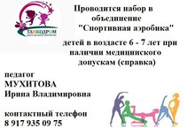 Открыта запись в объединение "Спортивная аэробика" 20.08.2020