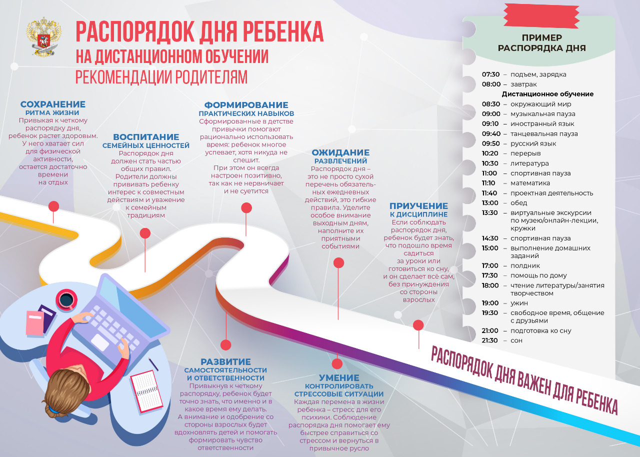 Распорядок дня ребенка на дистанционном обучении