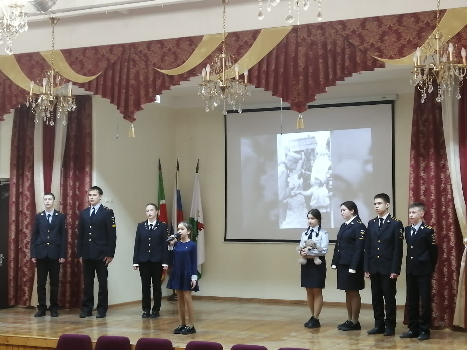 На базе Лицея №159 артисты детского театра "Лицедеи" представили театрально-музыкальную композицию "Дети и война", посвящённую 80-летию со Дня полного освобождения Ленинграда советскими войнами от фашистской блокады и Дню памяти жертв Холокоста.