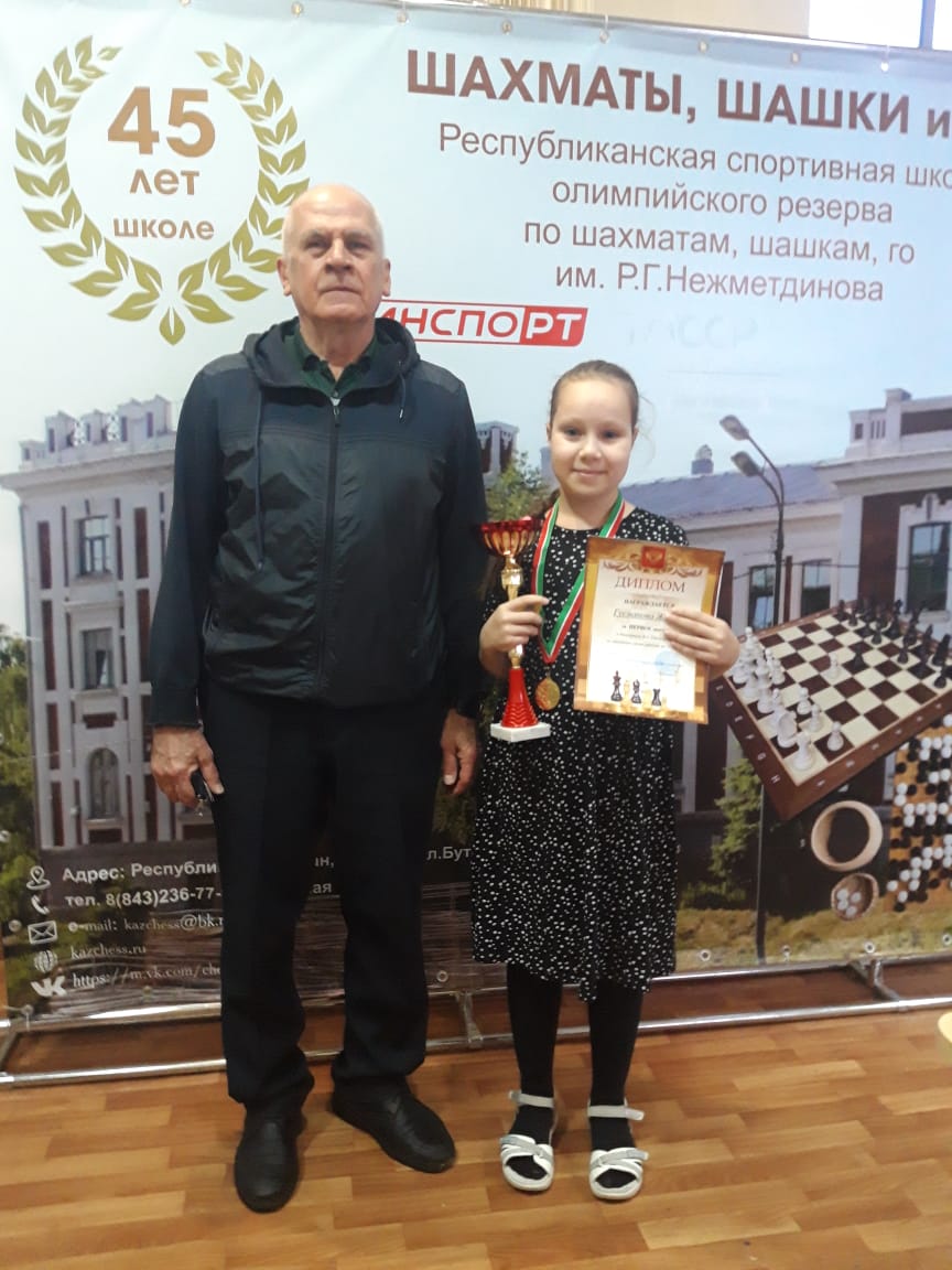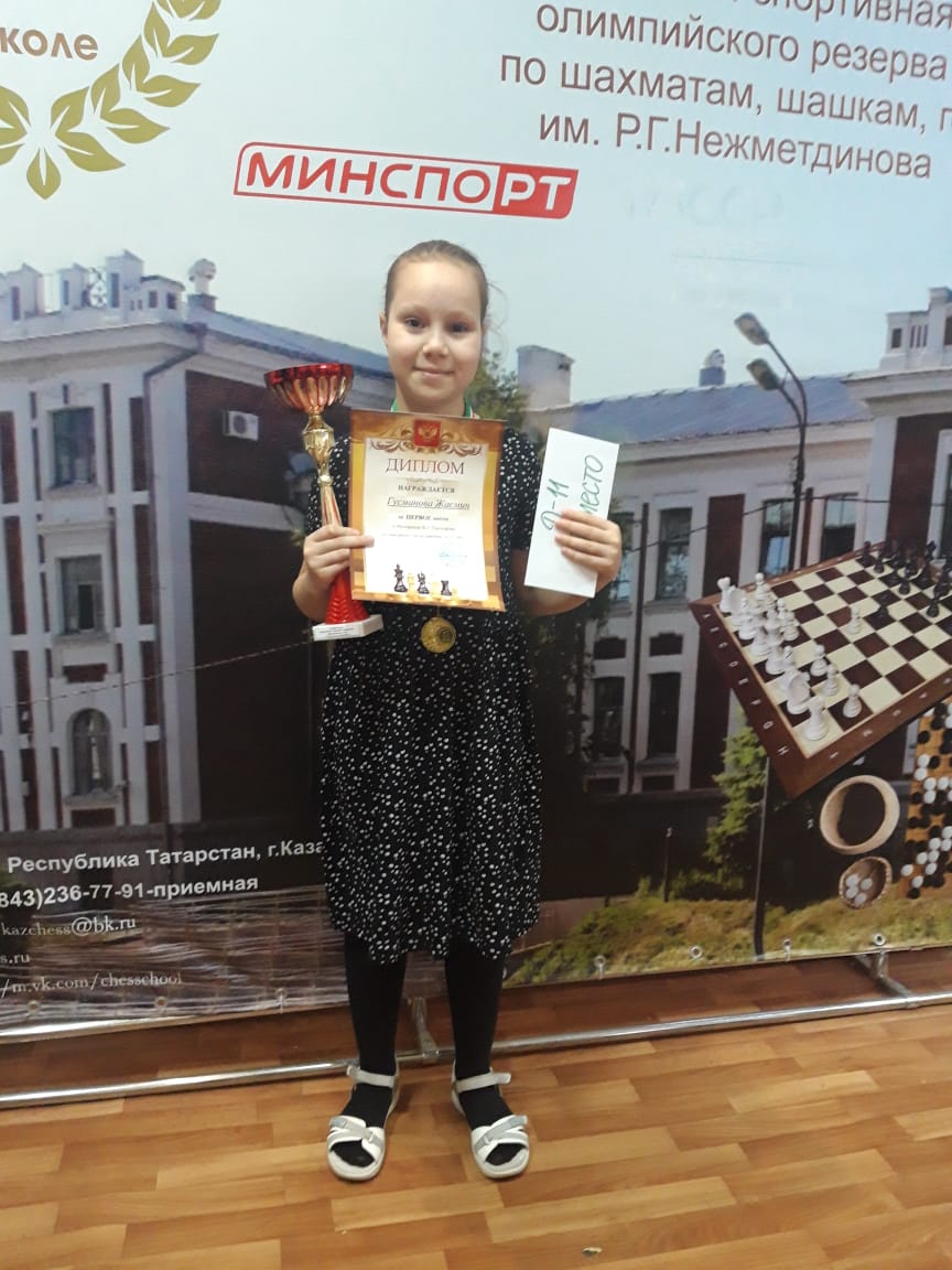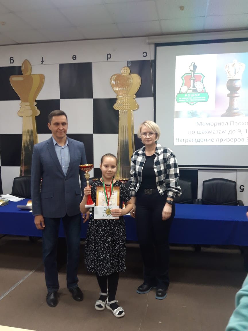 24 октября прошел Республиканский турнир Мемориала Ф. С. Прохорова по шахматам. Турнир проходил в РСШ им. Р. Г. Нежметдинова в возрастных категориях: до 9, 11, 13, 15 лет, с 24 по 30 октября. В турнире принимали участие около 200 юных шахматистов из Республики Татарстан. В категории девочки до 11 лет (2013-2014г.р) 1 место заняла Гусманова Жасмин учащаяся обьединения Шахматное "Королевство". Поздравляем победительницу! Желаем дальннйших успехов!