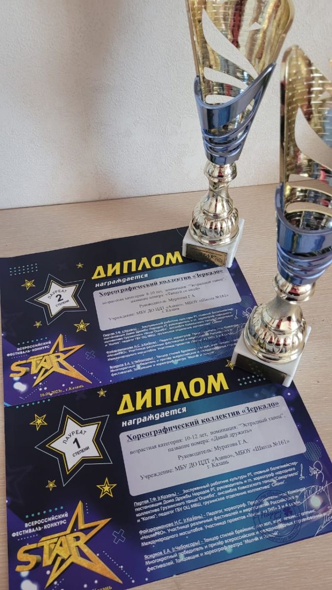 16 апреля учащиеся хореографического коллектива" Зеркало " стали лауреатами 1 и 2 степени во Всероссийском конкурсе-фестивале " Star". Поздравляем и дальнейших успехов!