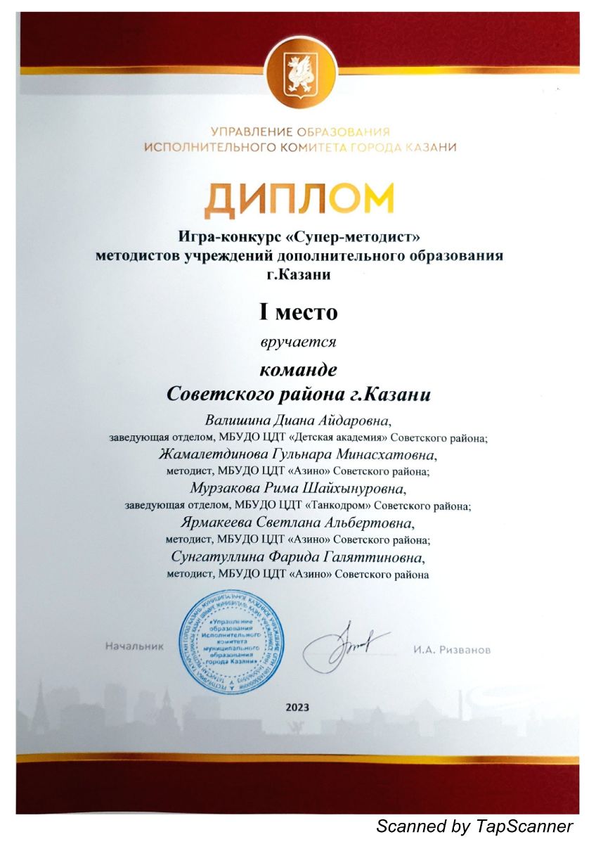 Поздравляем сборную команду Советского района с 1 местом в городской конкурсной квест-программе методистов УДО г.Казани "Методист наукотворчества - 2023г." ("Супер-методист"). МОЛОДЦЫ! Достойно выступили и победили! Так держать девчата!!!