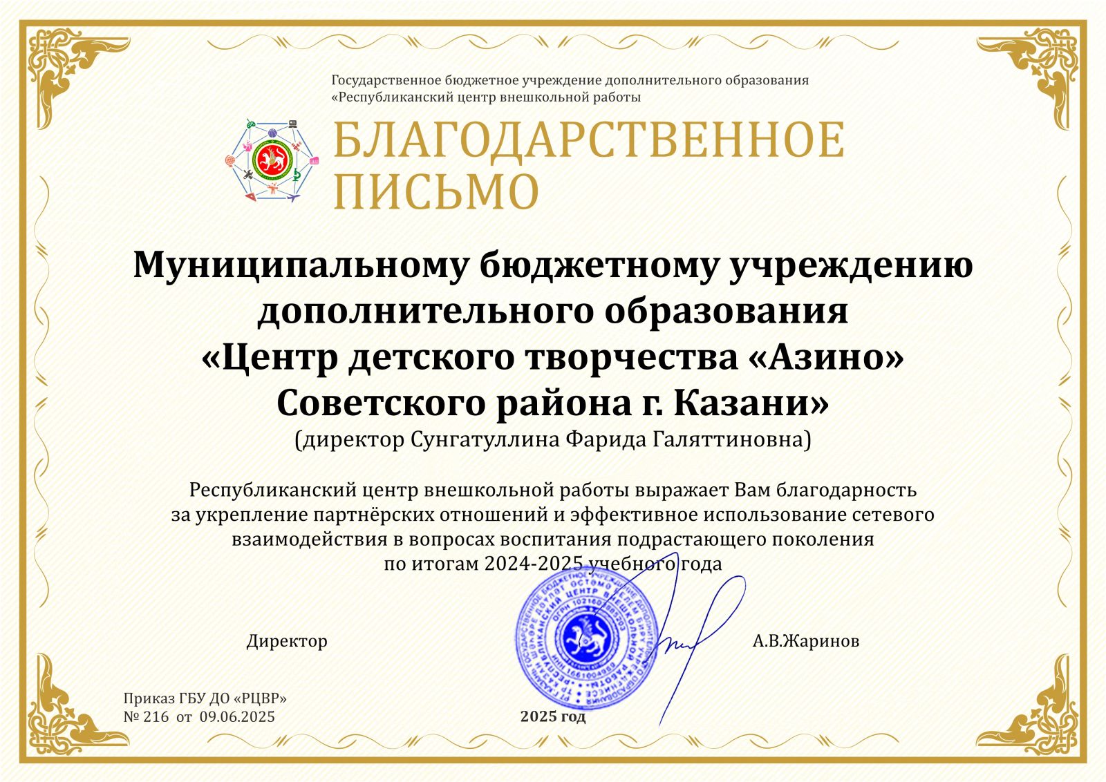 Благодарственное письмо