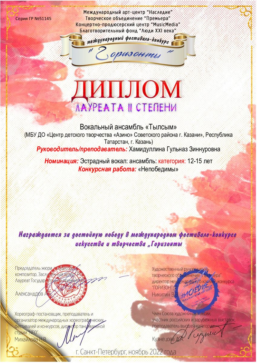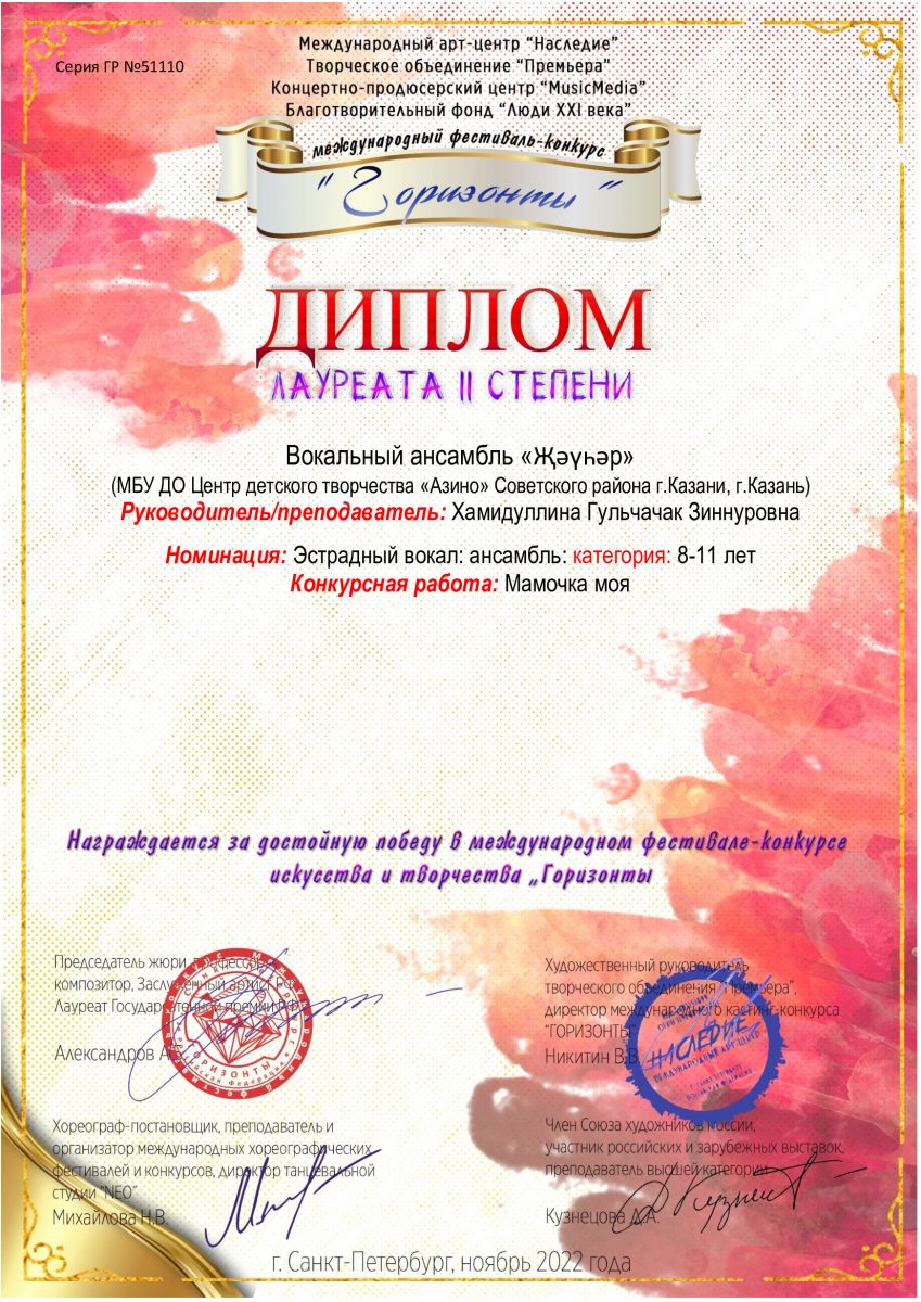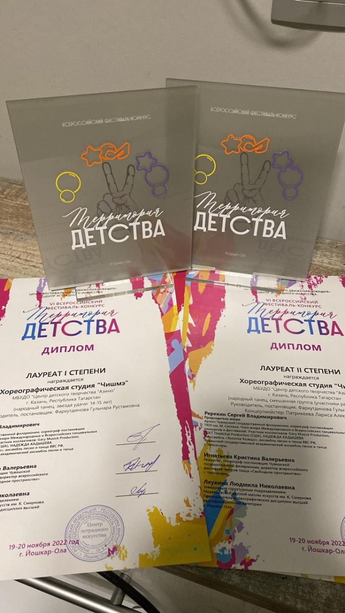 19 ноября хореографическая студия «Чишмэ» (рук. Фархутдинова Г.Р.) приняла участие во Всероссийском фестивале-конкурсе «Территория детства» проходившем в г. Йошкар-Ола, ребята стали лауреатами 1 и 2 степени.