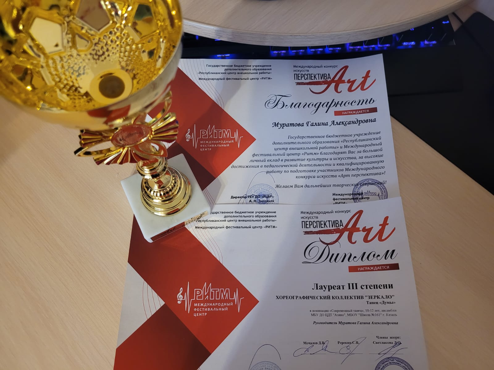 Поздравляем хореографический коллектив "Зеркало ", рук. Муратова Галина Александровна, с лауреатами 3 степени в Международном конкурсе искусств "Арт- перспектива ".