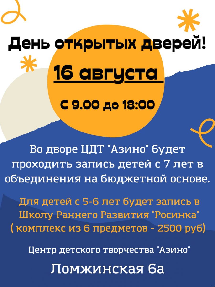 16 АВГУСТА 2022 ГОДА пройдет День ОТКРЫТЫХ ДВЕРЕЙ!! Ждем всех желающих для записи в наши объединения!